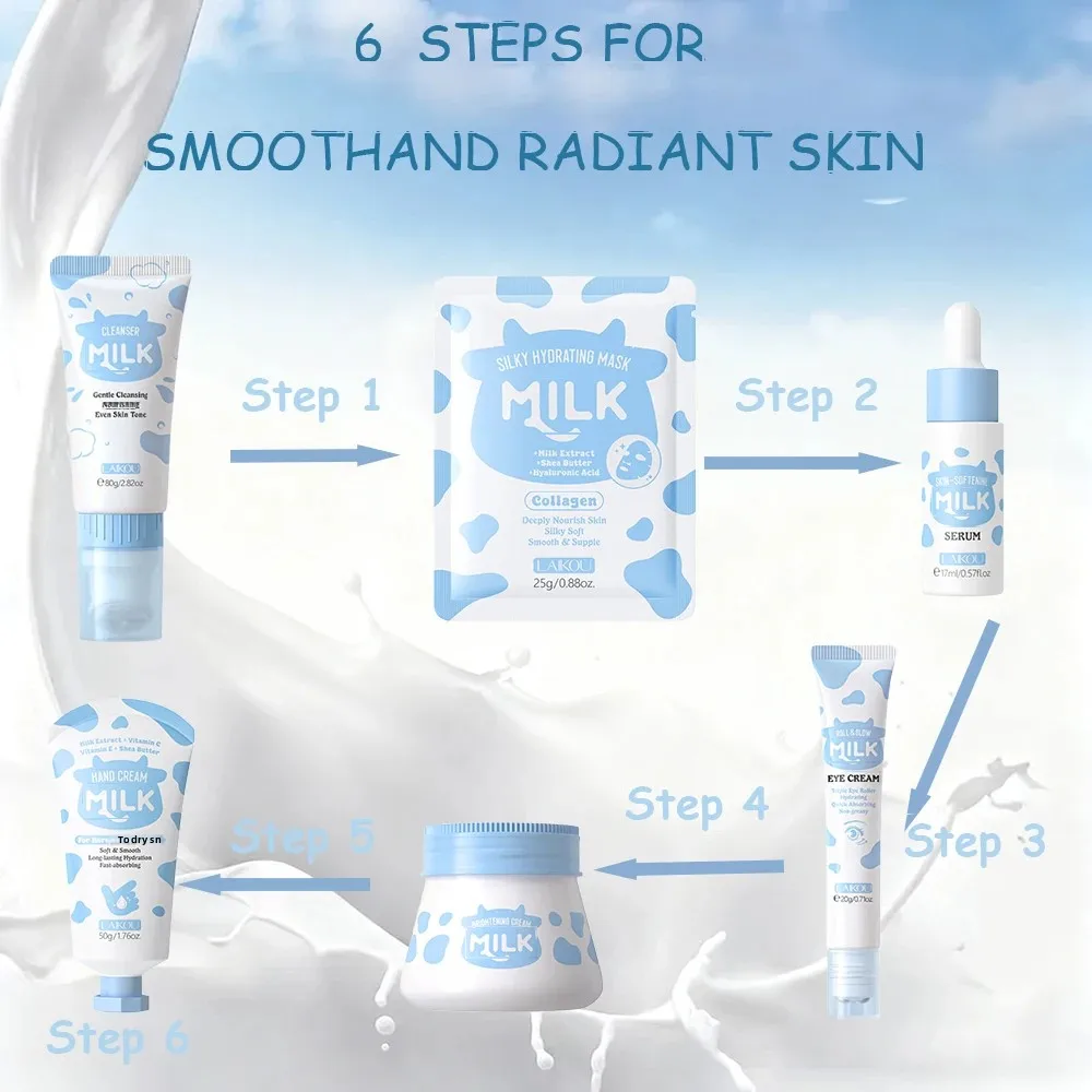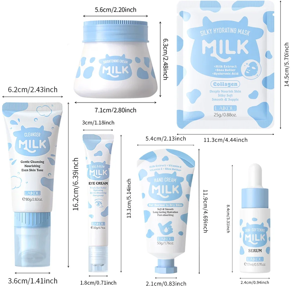 10PCS Milk Nourish Skincare Set Face&Hand Dual Care – Brightening Eye Cream BB Cream Pore Cleansing Gentle Deep Hydration Christ