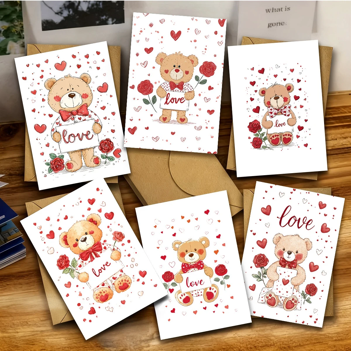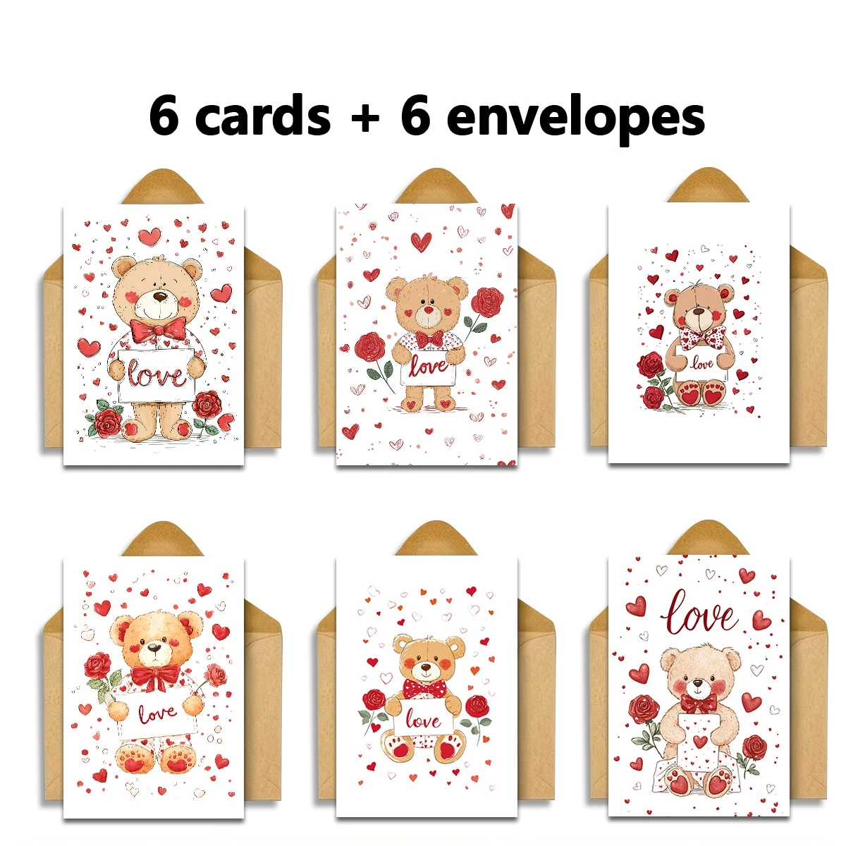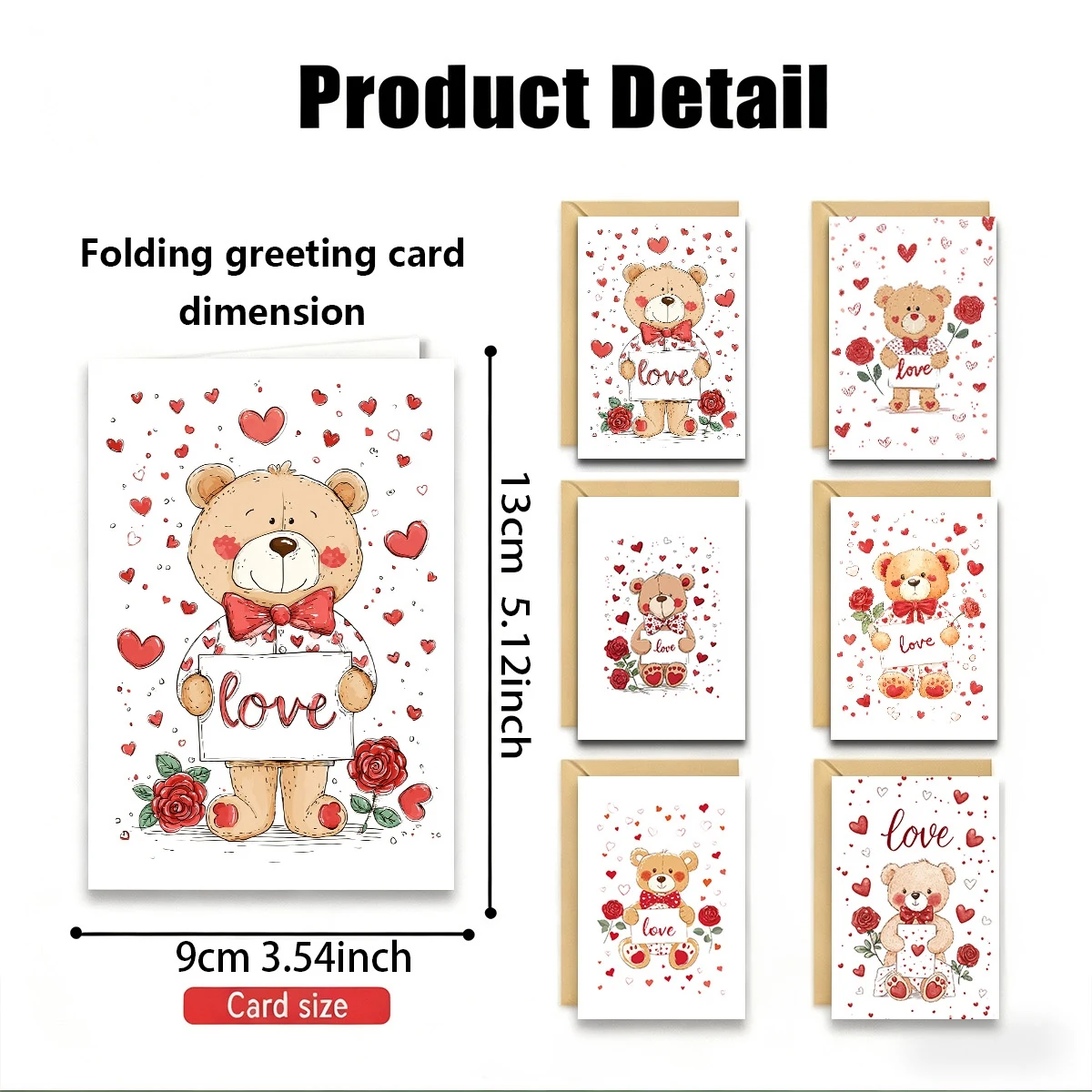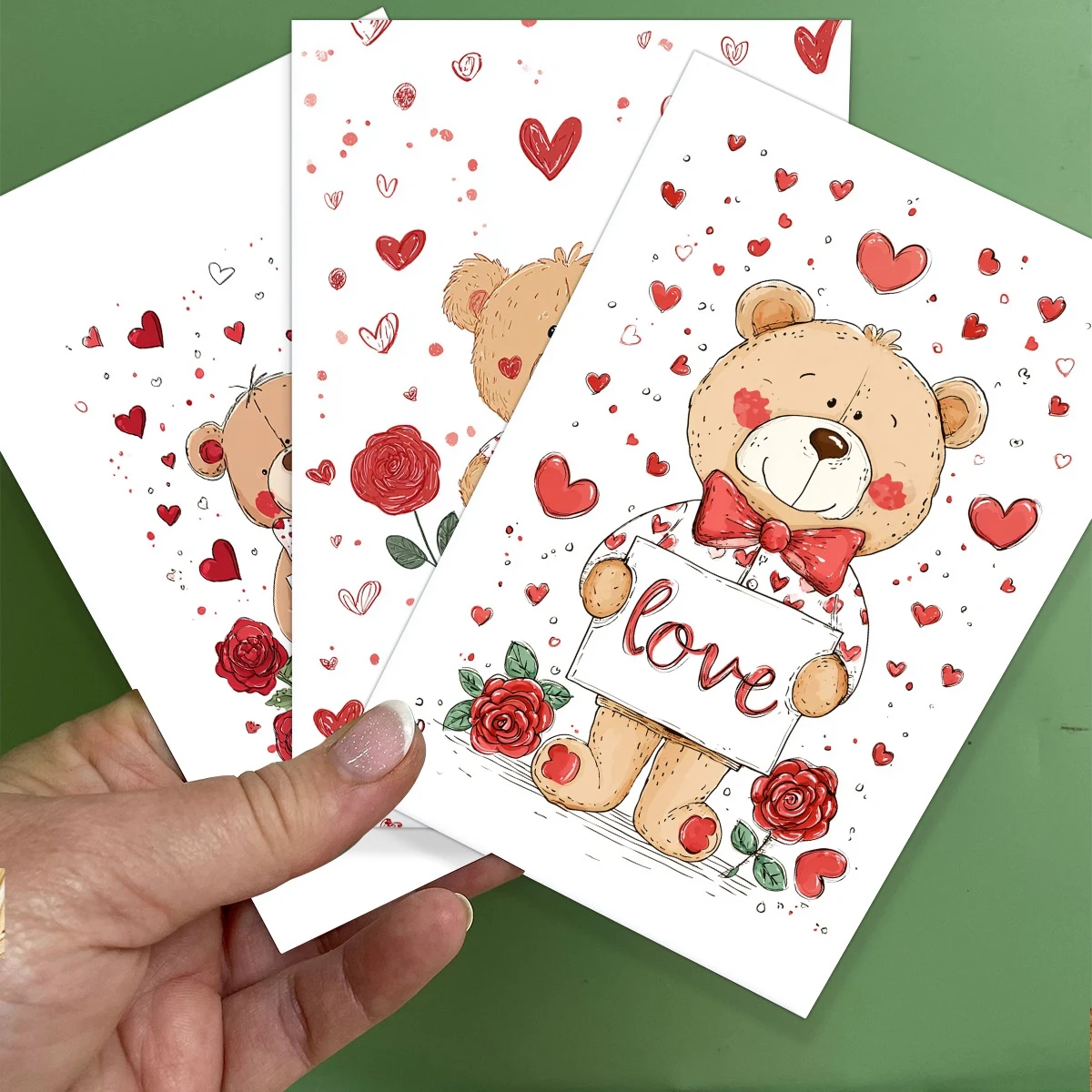 12Pcs Romantic Valentine’s Day Card Invitation Card Love Letter Anniversary Blessing Heart Shaped Rose Pattern Card