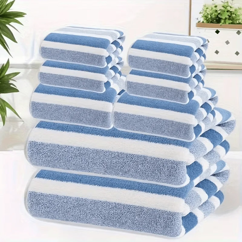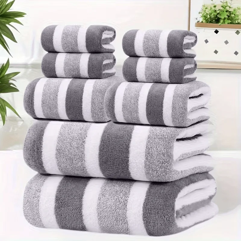 2pcs Luxury Coral Fleece Towel Set – 5-Star Hotel Standard Super Soft Quick Dry Bath & Hand Towels, Non-Shedding, Striped