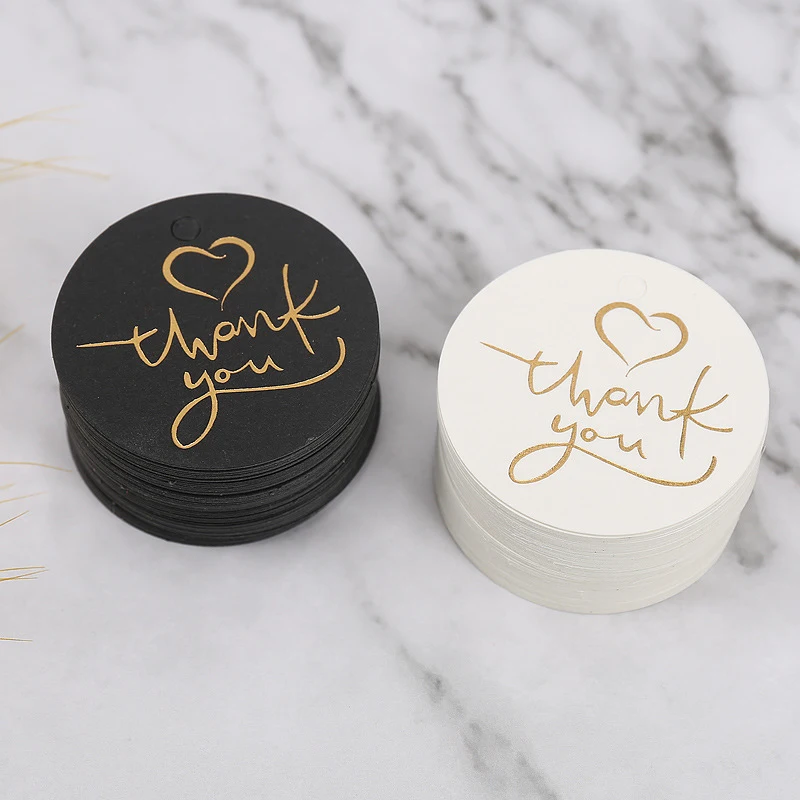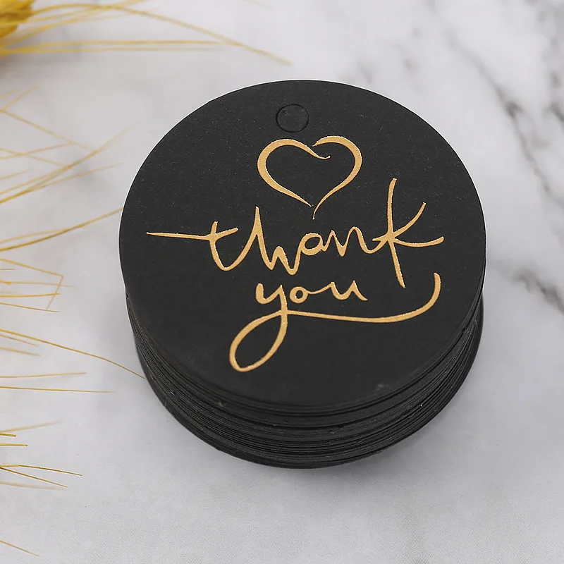 50Pcs 4.5X4.5cm Gold Foil Heart Round Thank You Tag Packing Decoration Boxes Card for Small Business Gift Wrapping Hang Lables