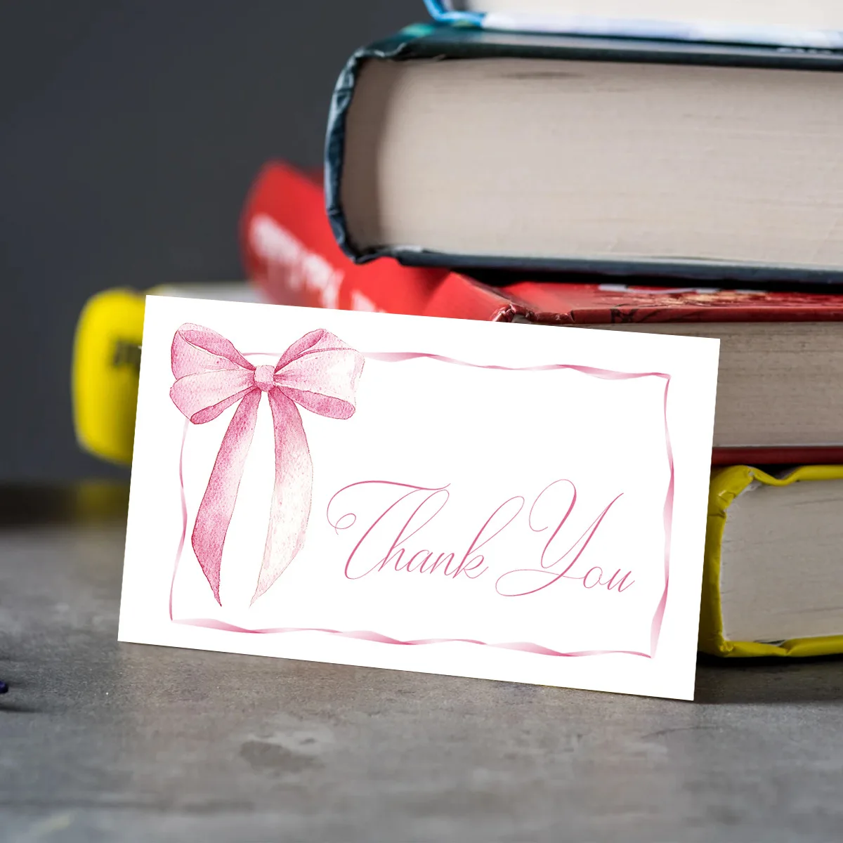 50Pcs Pink Minimalist Thank You Cards, Mini English Gift Note Cards with Blank Design for Party Favors, Gift Wrapping & Decorati