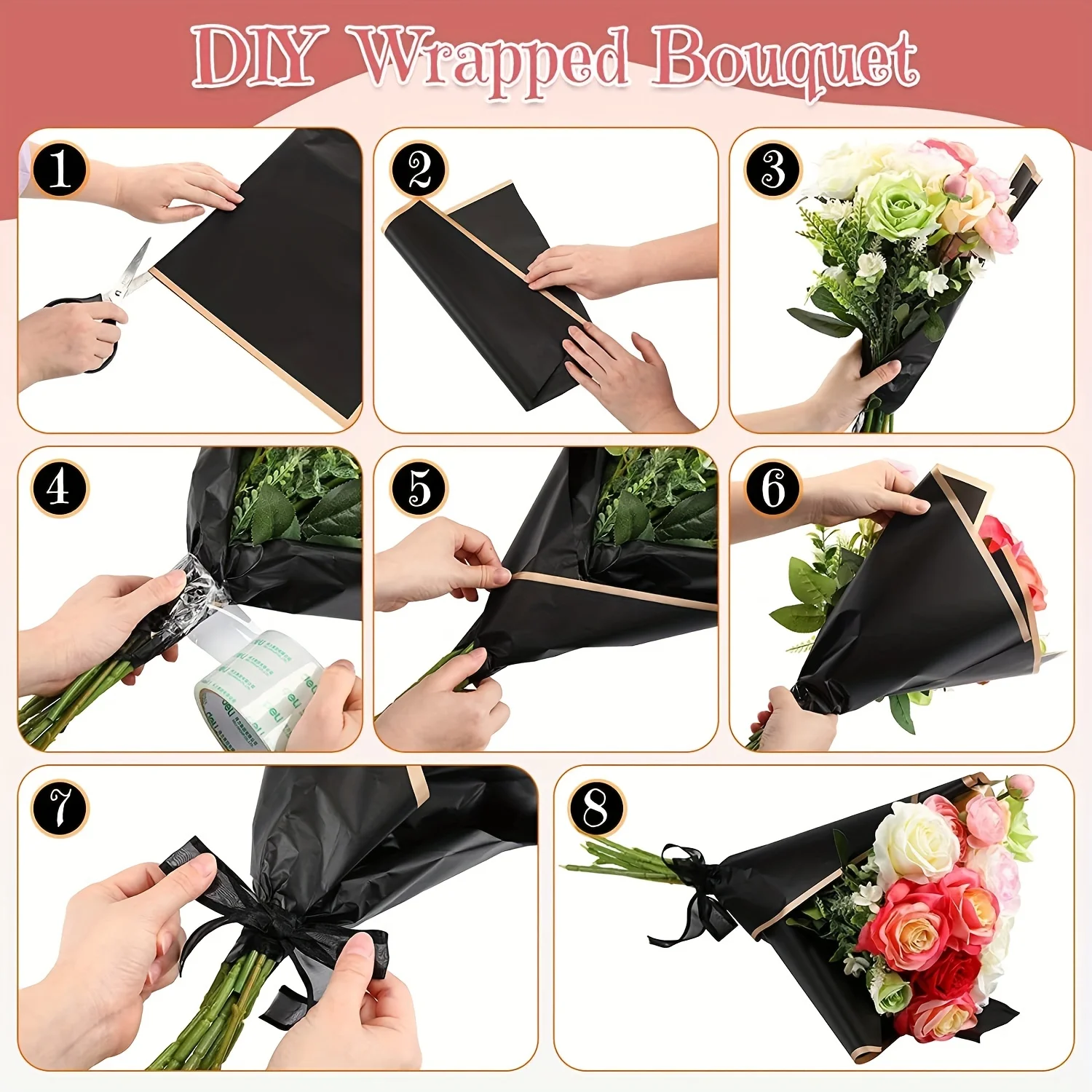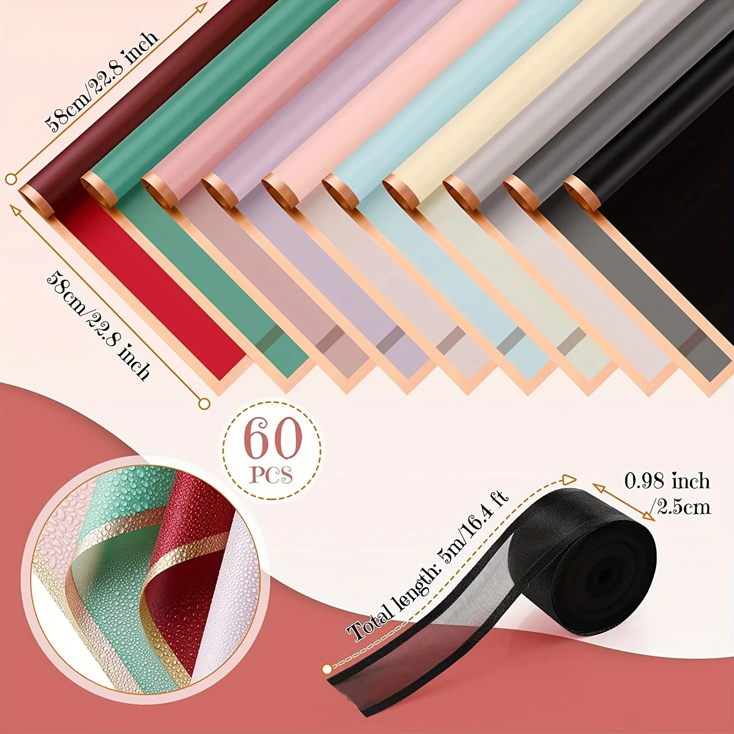60 PCS Solid Color Border Flower Wrapping Paper, Waterproof Translucent Bouquet Wrapping Paper, Wedding Handmade Gift Bouquet