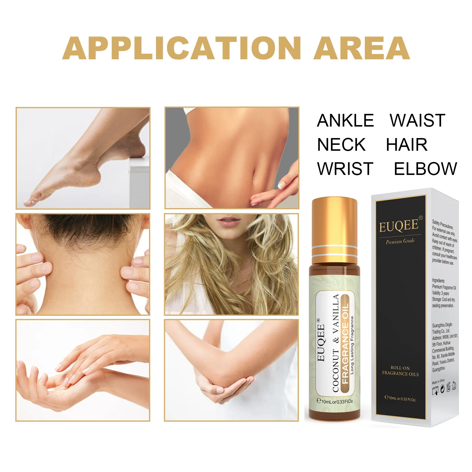 EUQEE 10ml Women’s Roller Fragrance Oil-Coconut Vanilla Bubble Gum Bright Crystal Bombshell Midnight Rose Angel Aroma Oils
