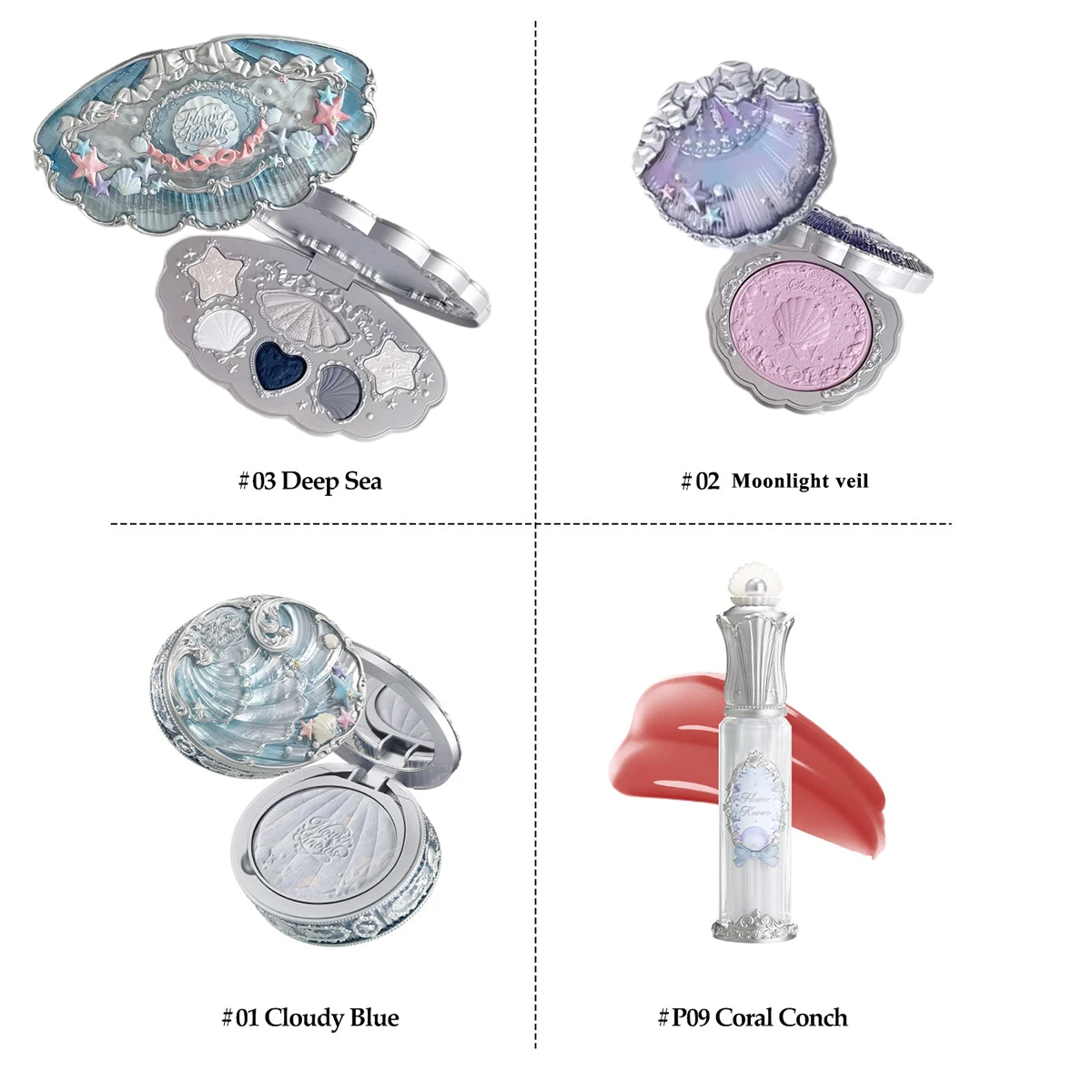 Flower Knows Mermaid Glow Makeup Set Eyeshadow Lip Gloss Blush Pearl Shell Series New Arrival Fantasy Look Gift for Girls