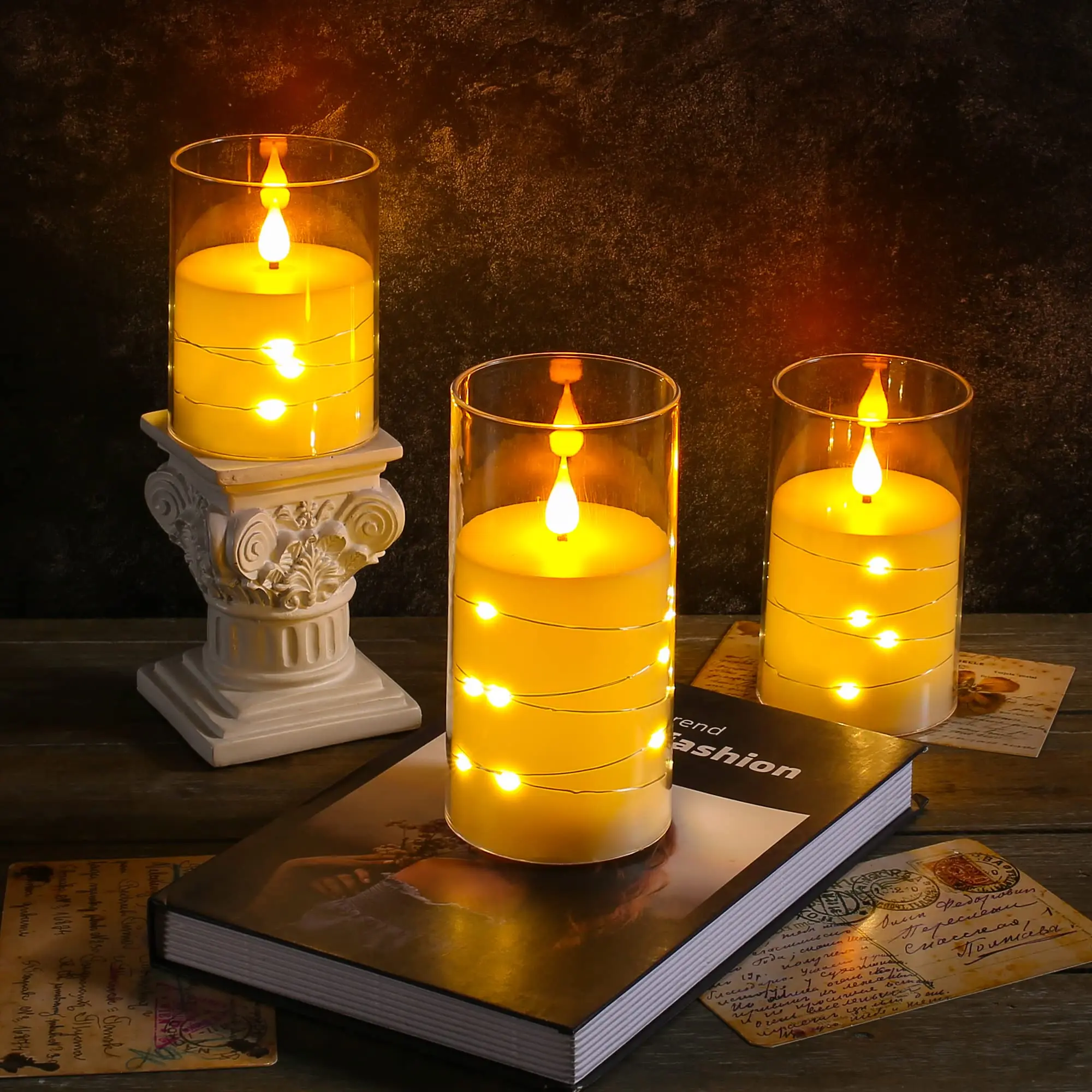 LED flameless candle with string lights, button battery powered candle, perfect for family gatherings, candlelight dinner, Valen
