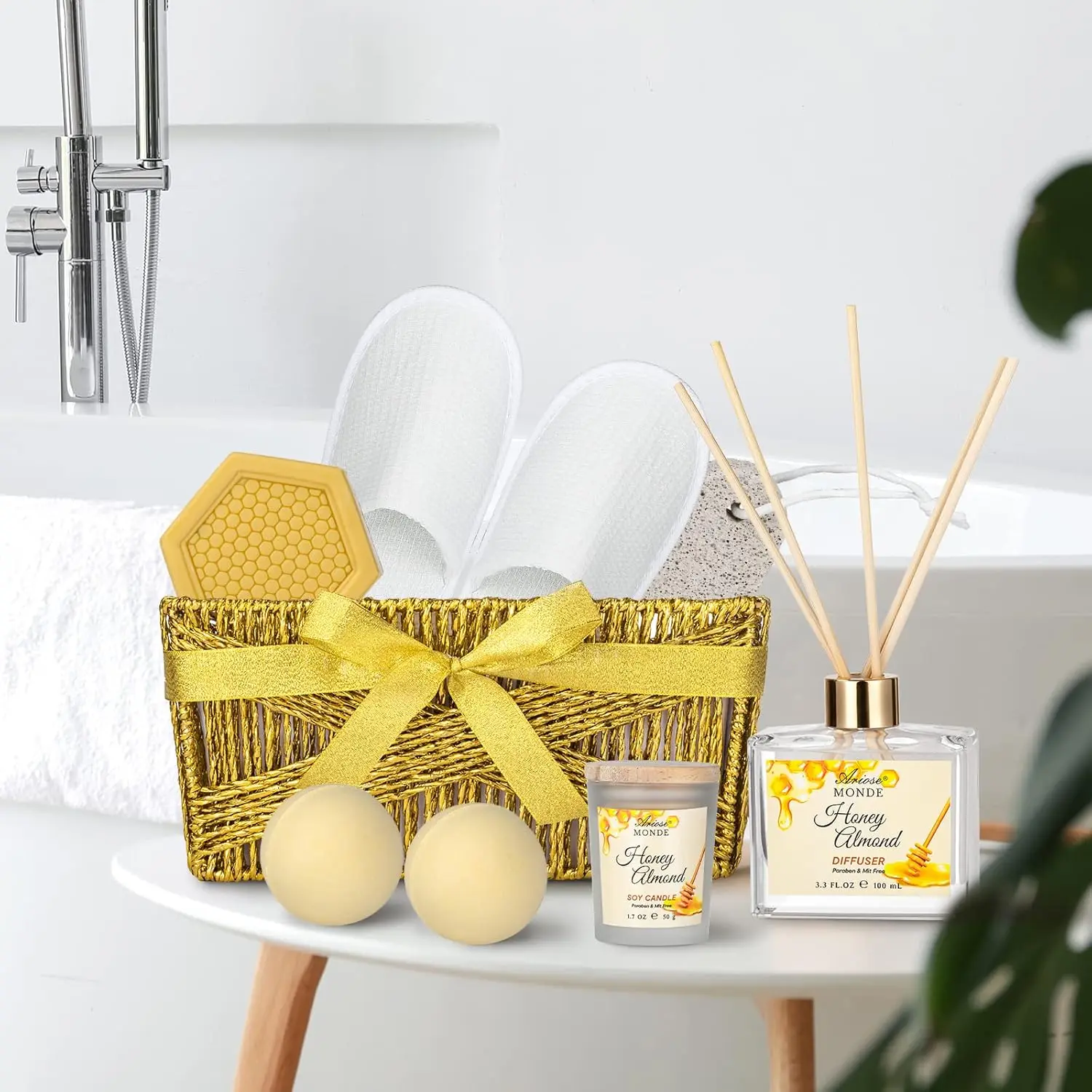 Luxury Honey Almond Spa Gift Set, 15-Piece Bath & Body Kit for Women & Teens, Relaxing Home Spa Experience