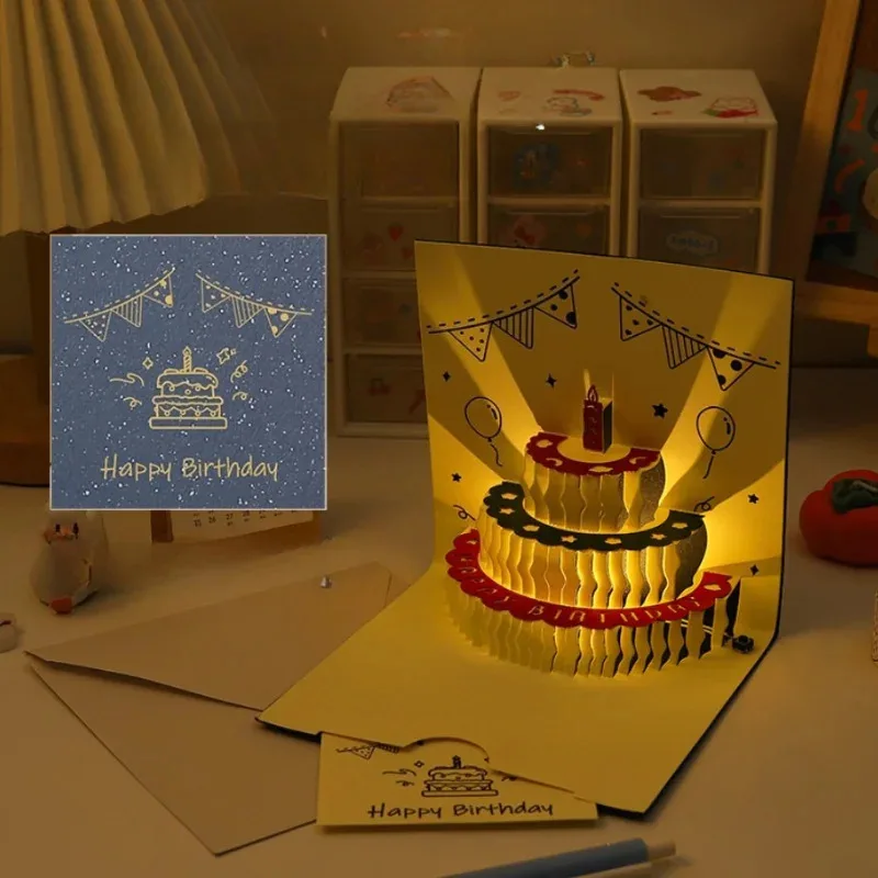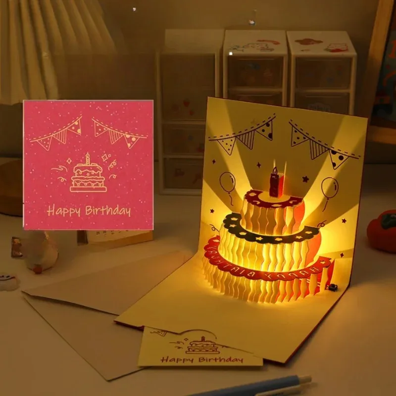 Musical 3D Pop-Up Birthday Greeting Card – LED Light-Up Cake Design, Auto-Play Music, Ideal Gift for Mom, Wife, Siblings & Frien