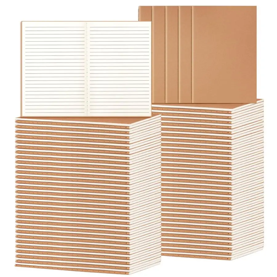Pack A5 Ruled Lined Kraft Notebooks Bulk, Journaling Notebooks, Soft Cover Composition Notebook, 8.3×5.5 Inches 60 Pages Travel
