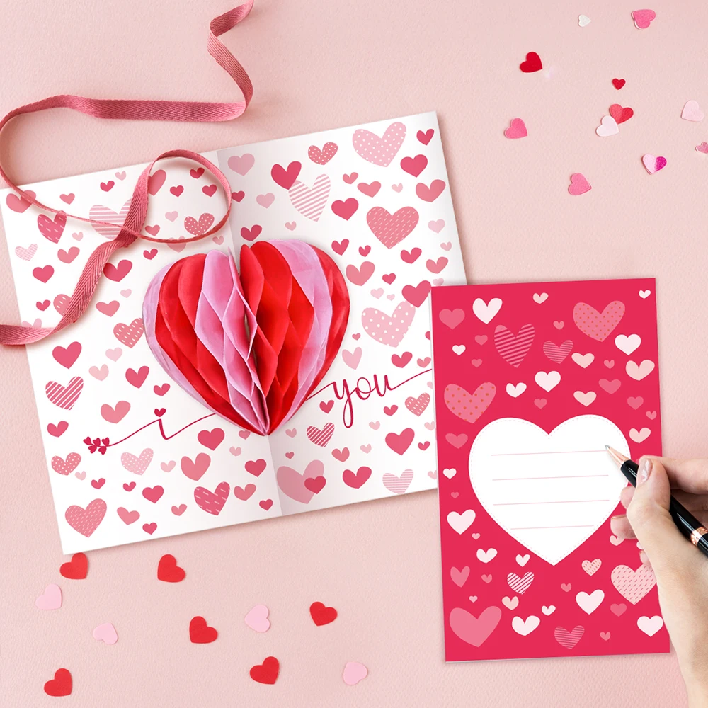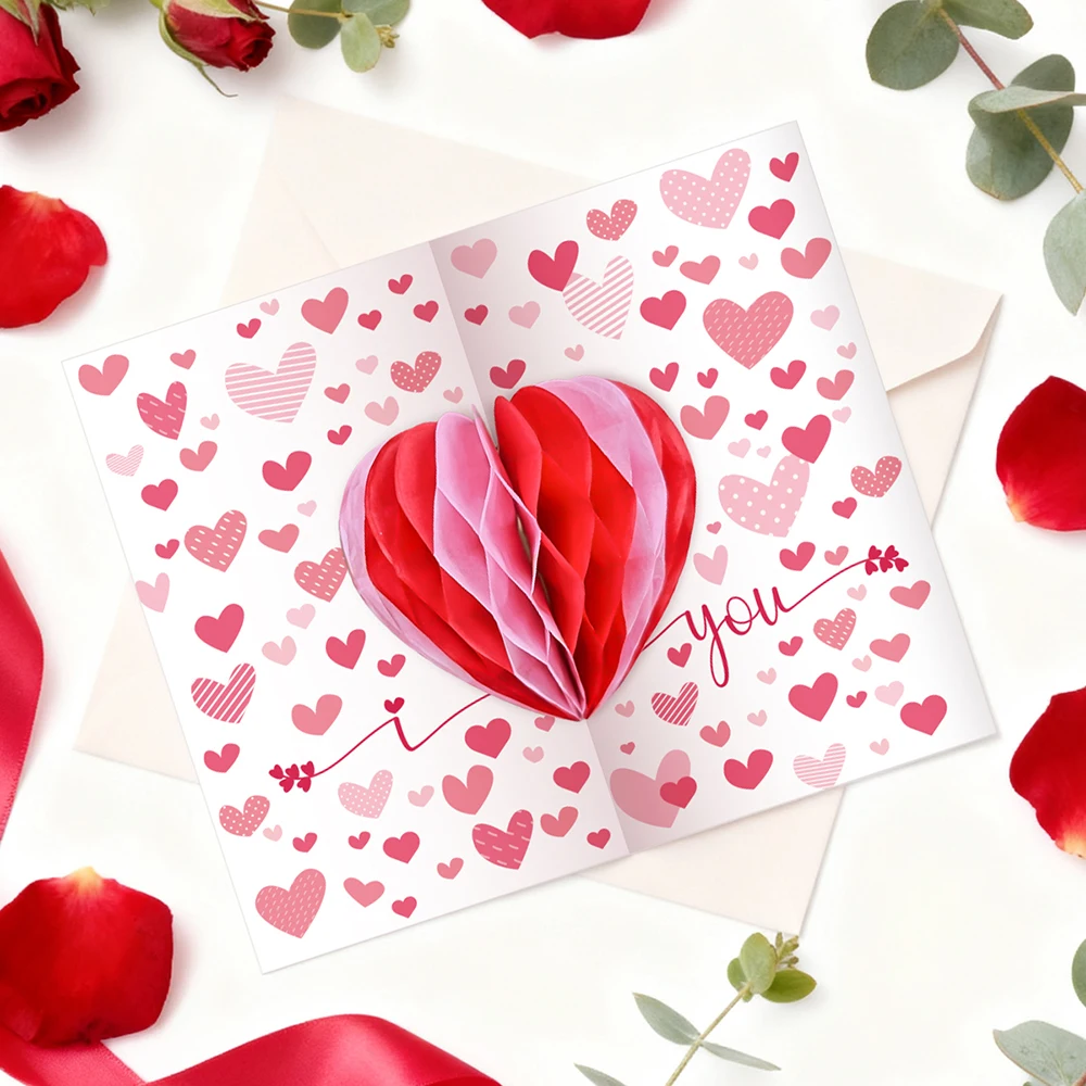 Valentine’s Day Love Card Decoration Creative Romantic Heart shaped Paper Honeycomb Ball Handwritten Confession Love Letter Card